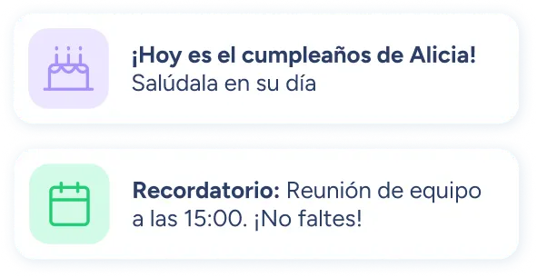 Gracias a las notificaciones automáticas de cumpleaños y aniversarios, todo tu equipo enviará una catarata de saludos en cada fecha especial.